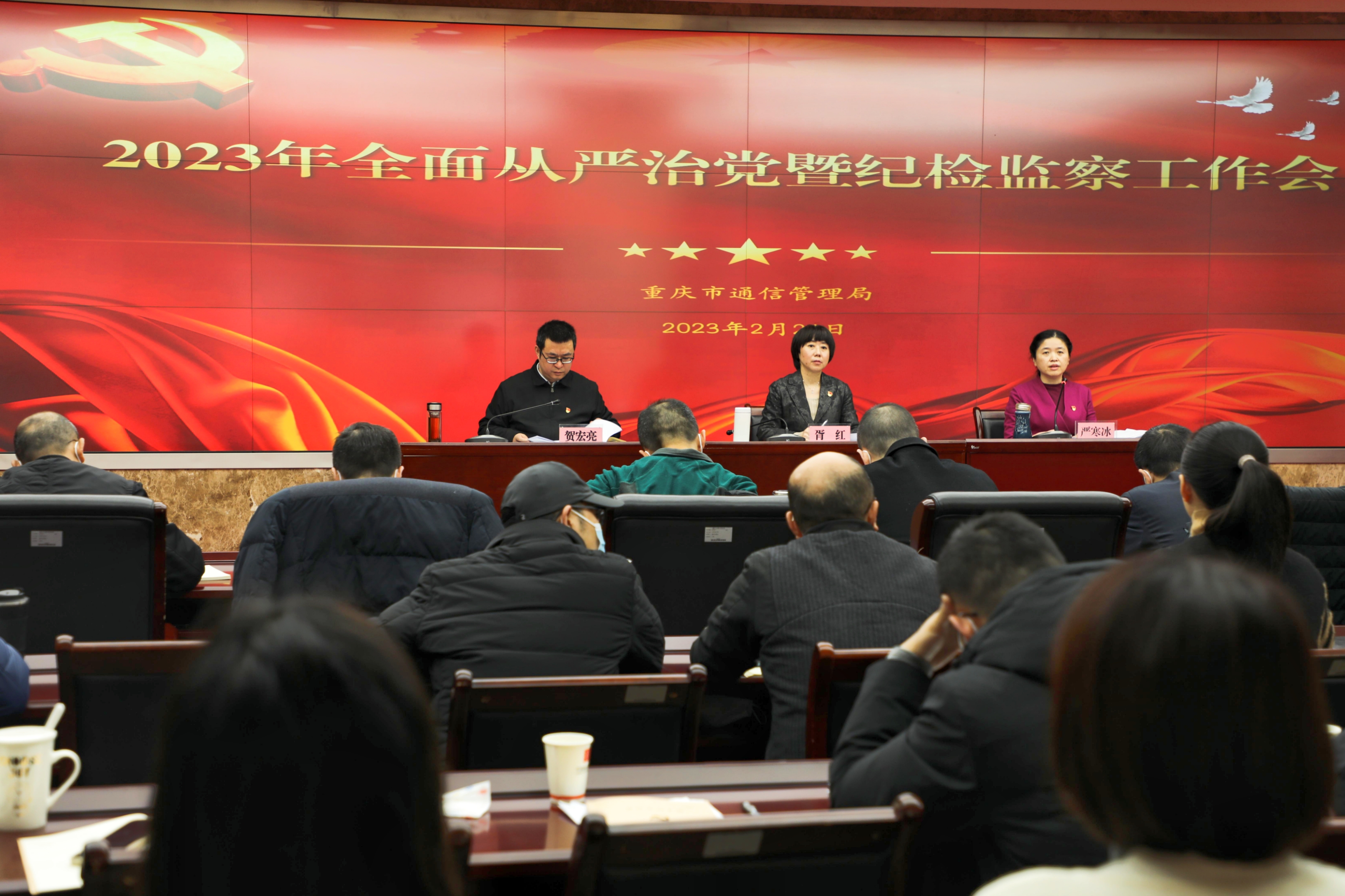 2月24日上午,重庆市通信管理局召开2023年全面从严治党、纪检监察暨2022年度党支部书记述职评议考核工作会议。深入学习贯彻党的二十大精神,认真贯彻落实习近平总书记关于党的建设系列重要讲话和二十届中央纪委二次全会精神,传达工业和信息化部2023年党的建设暨党风廉政建设工作会议精神,总结2022年全面从严治党和纪检监察主要工作,部署2023年重点任务,纵深推进全面从严治党,以高质量党建引领保障重庆信息通信行业高质量发展。