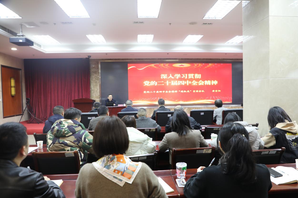 12月2日下午,我局举办学习贯彻党的二十届四中全会精神宣讲报告会,邀请“进机关”宣讲分队成员、市委直属机关工委副书记黄宗阳为全局党员干部作报告。局党组书记、局长胥红主持会议并讲话。全局干部职工参加会议。